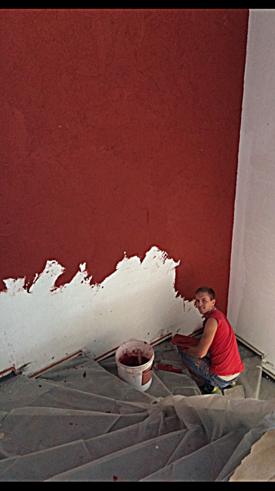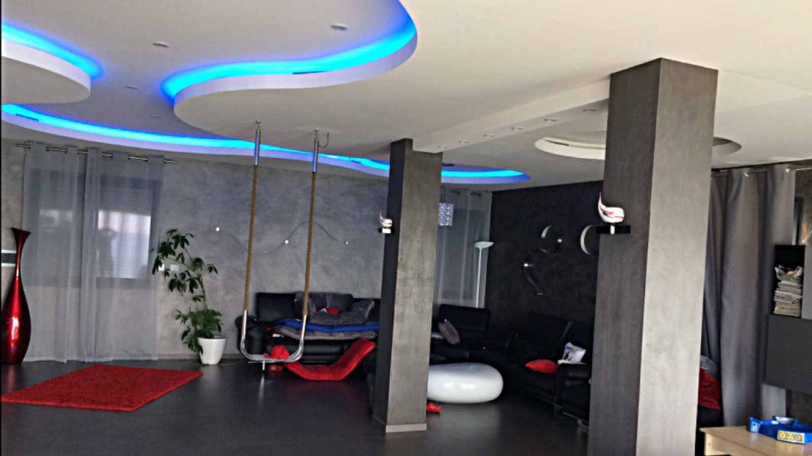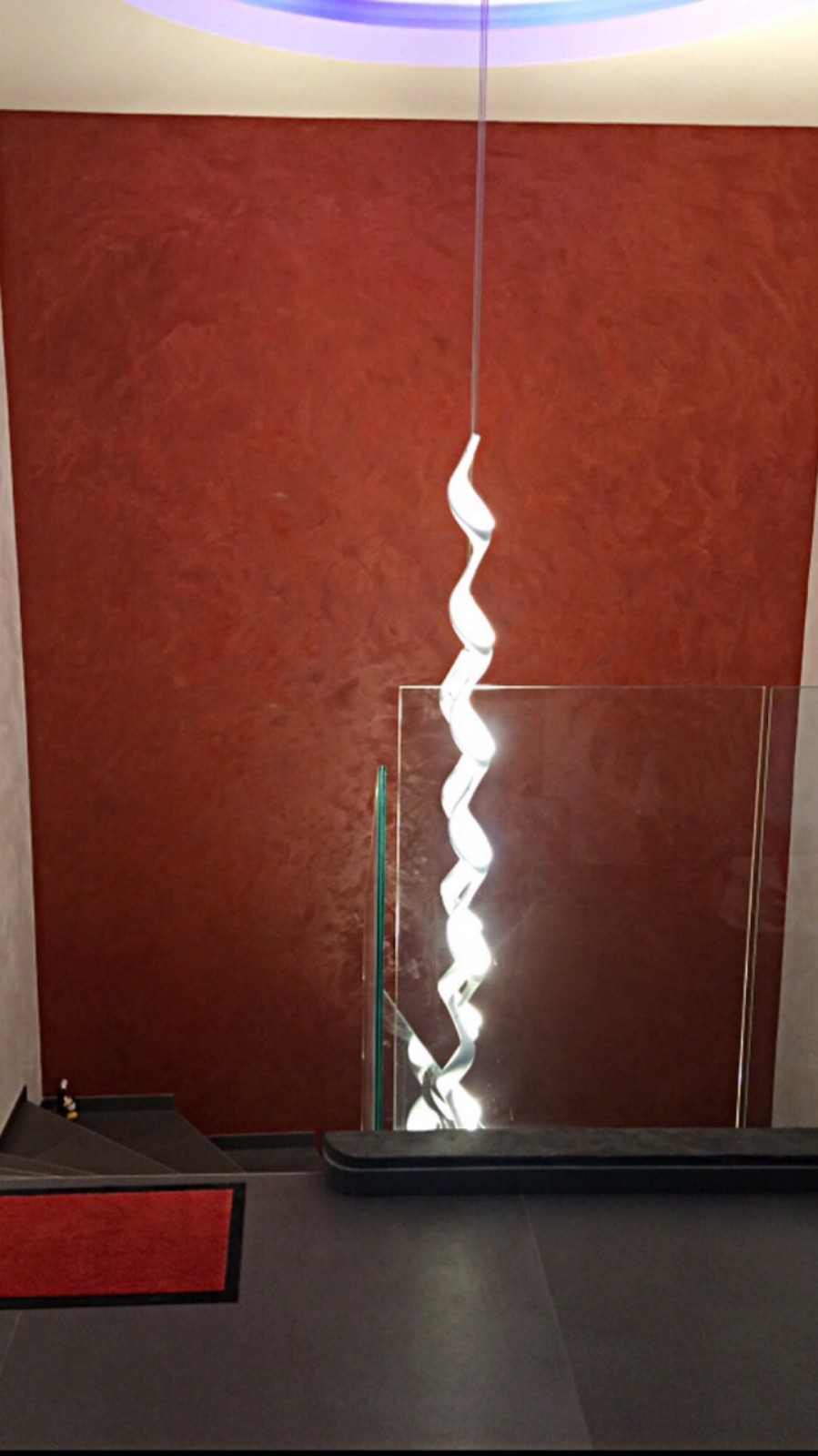 J'ai présenté mes échantillons de béton ciré et le client a choisi une dominante de gris anthracite et rouge. Il m'a laissé l'initiative du style de décoration .