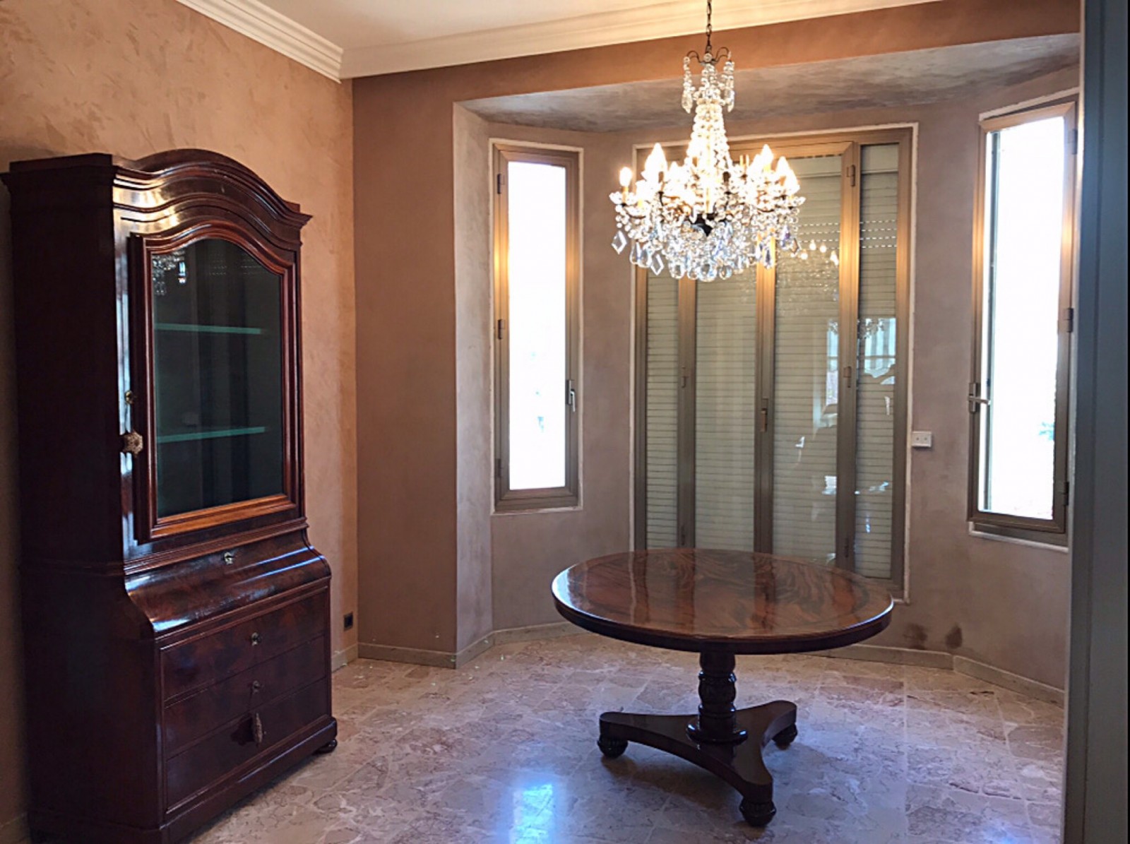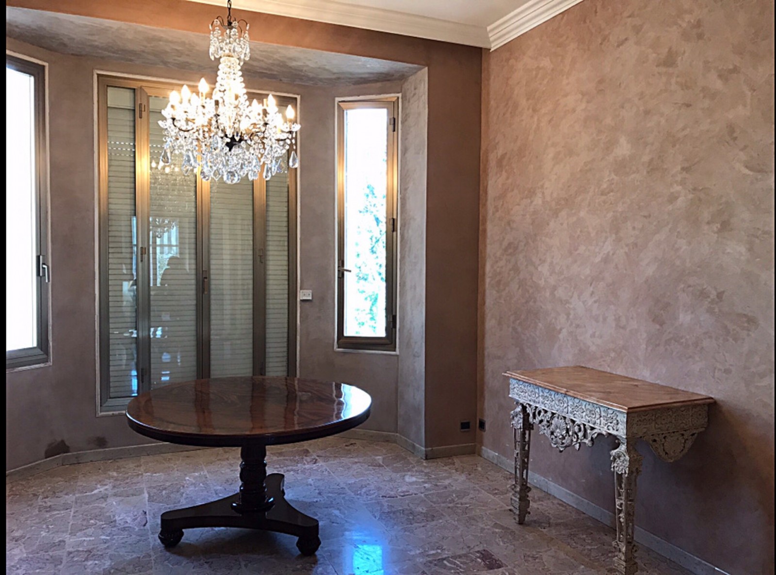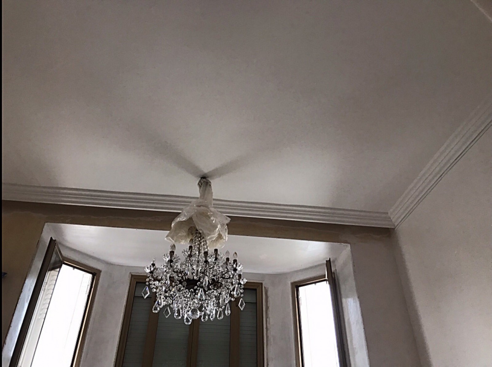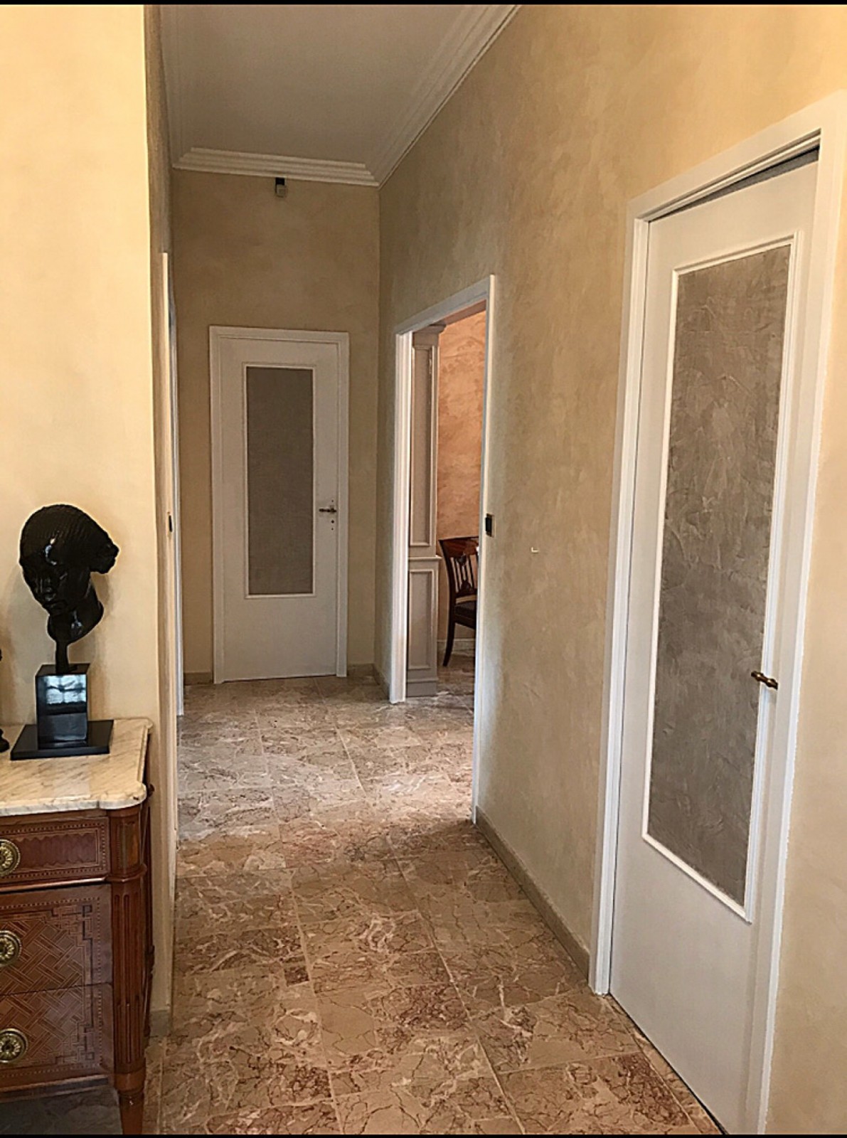 Cette cliente voulait poser du tissu mural. Nous lui avons suggéré d'appliquer un enduit à la chaux dans une chambre. En voyant le résultat, elle nous a demandé de décorer sa maison avec le même enduit. J'ai également proposé d'enduire le panneau central des portes avec du stucco.
