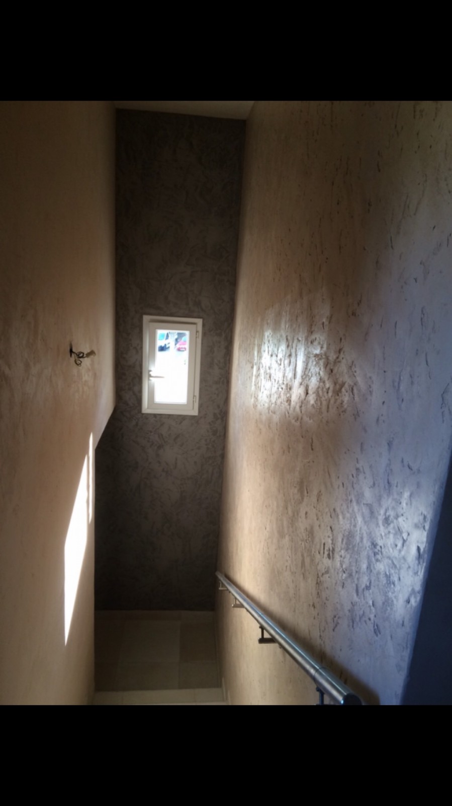 Nous avons été contactés pour la décoration intérieure d'une maison à Porto-Vecchio. Nous avons proposé au client un enduit minéral à la chaux sur toute la surface dans l'esprit d'une maison traditionnelle.